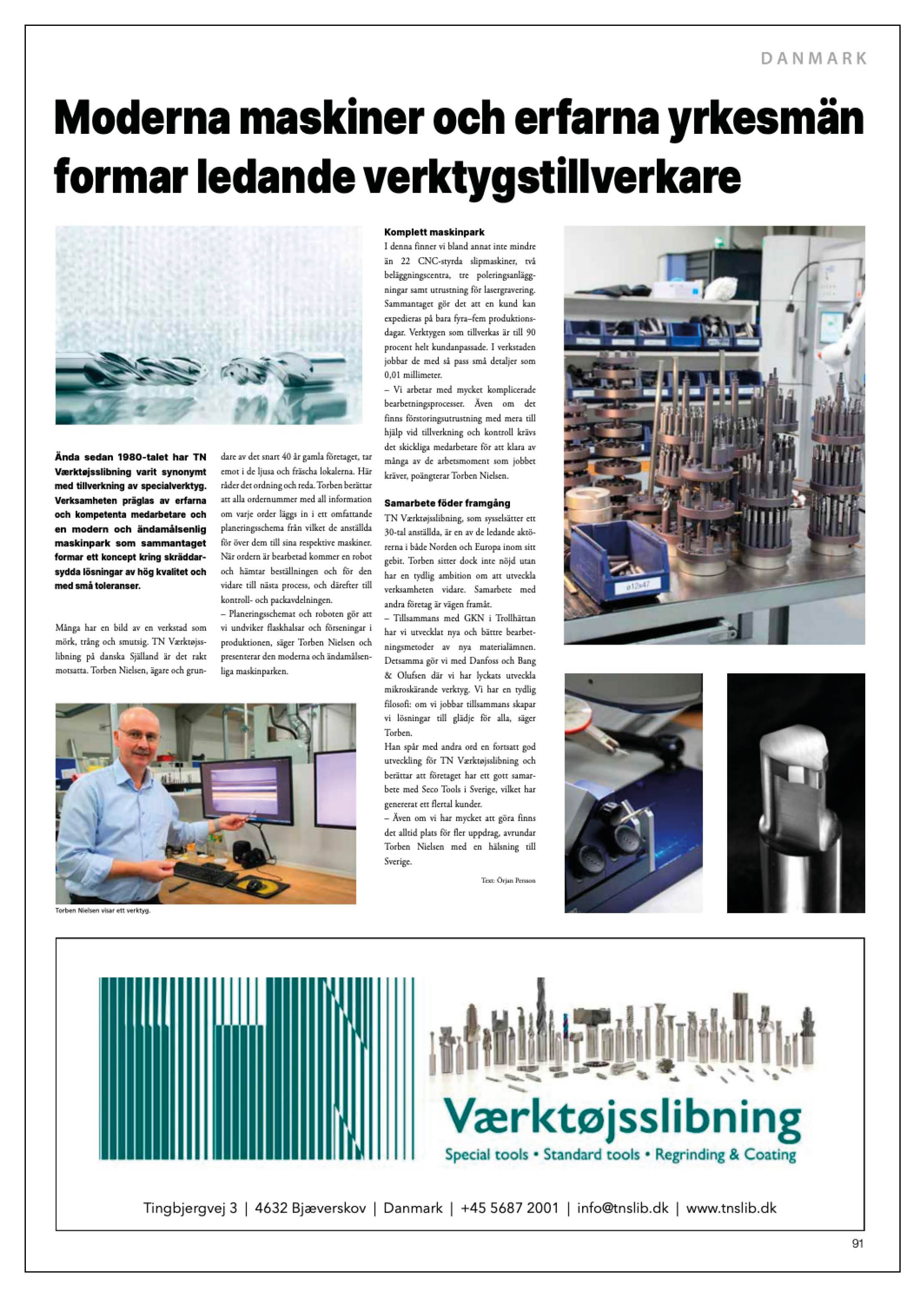 Her fremhæves det at TN fremstiller specialværktøj udfra et koncept omhandlende skræddersyede løsninger af høj kvalitet og med små toleranser.